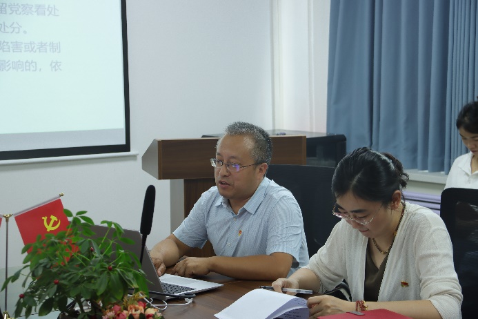 会议第五项,专题微党课。公司党总支纪检委员、副经理冯治东讲授《党的六大纪律》;教工第一党支部书记叶培顺讲授《严守党的纪律规矩做政治上的“明白人”》;教工第二党支部书记刘汉烨讲授《党纪违规案例分析》。教工第三党支部书记刘红霞讲授《扛起政治责任,严守政治底线》。