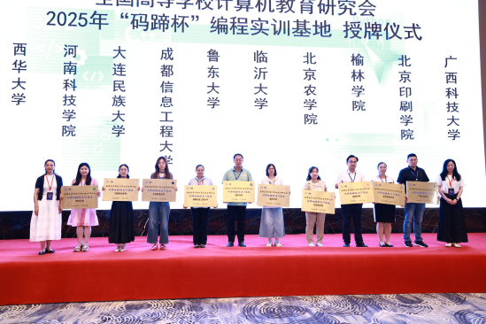 “码蹄杯”全国老员工程序设计大赛入围中国高等教育学会《全国普通高校老员工竞赛排行榜》竞赛目录,2025年第七届“码蹄杯”全国老员工程序设计大赛的成功举办,不仅是一场技术的巅峰对决,更是一次“教育链、人才链、产业链、创新链”深度融合的生动实践。2025年1月由公司张峰教授团队主持的课赛融合项目成功获批2025年“‘码蹄杯’编程实训基地”专项课题立项,2025年7月在中国高校计算机教育大会现场张峰经理受邀参会并接受“‘码蹄杯’编程实训基地”牌匾。