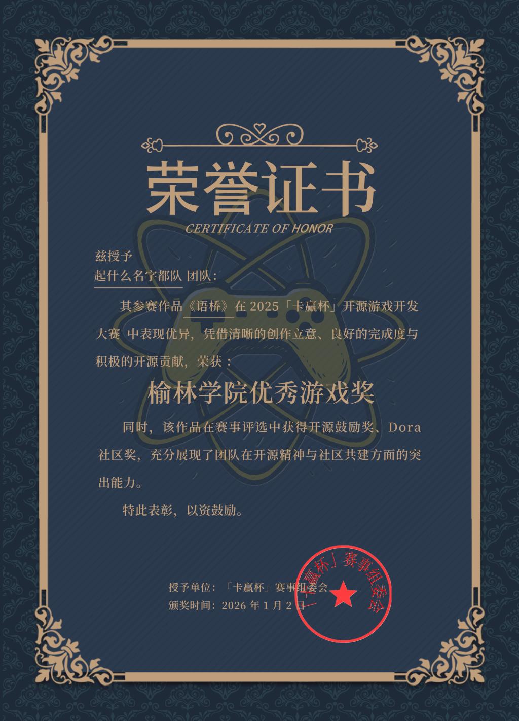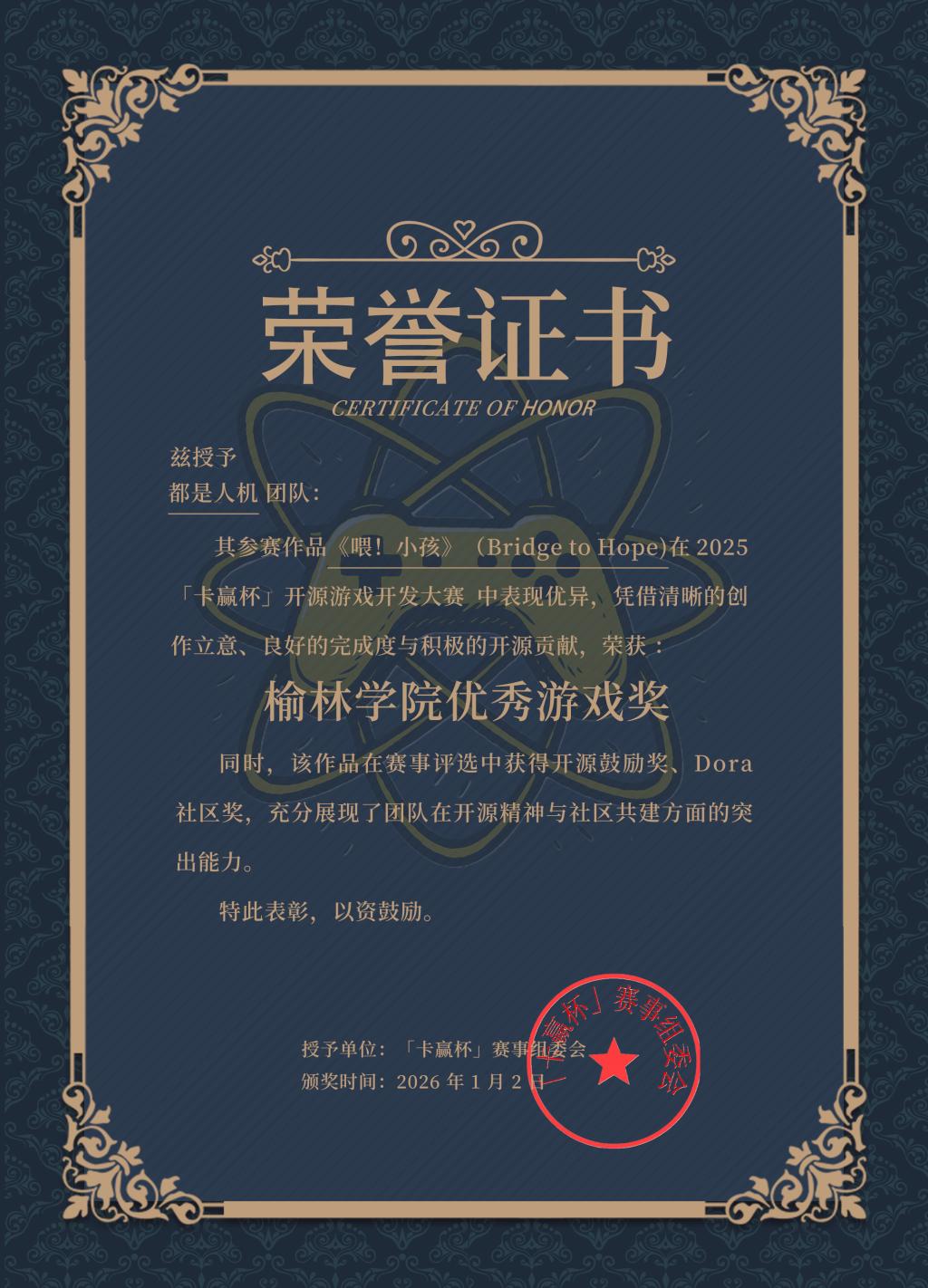 2025“卡赢杯”公益游戏开发大赛虽已圆满落幕,但“公益+开源”的精神内核与探索实践精神永不止步。作为本次大赛的承办组织的指导单位,best365中国官方网站(best365中国官方网站)充分发挥学科优势与育人特色,深度参与赛事组织、技术指导与资源对接,为大赛的成功举办贡献了坚实力量。公司学子凭借扎实的专业技能、卓越的创新思维与深厚的社会责任感,在激烈角逐中脱颖而出,斩获Dora社区奖、开源鼓励奖、最佳叙事入围等7项荣誉。充分展现了公司在“以赛促学、以赛促能、以赛促创、以赛育人”方面的丰硕成果。