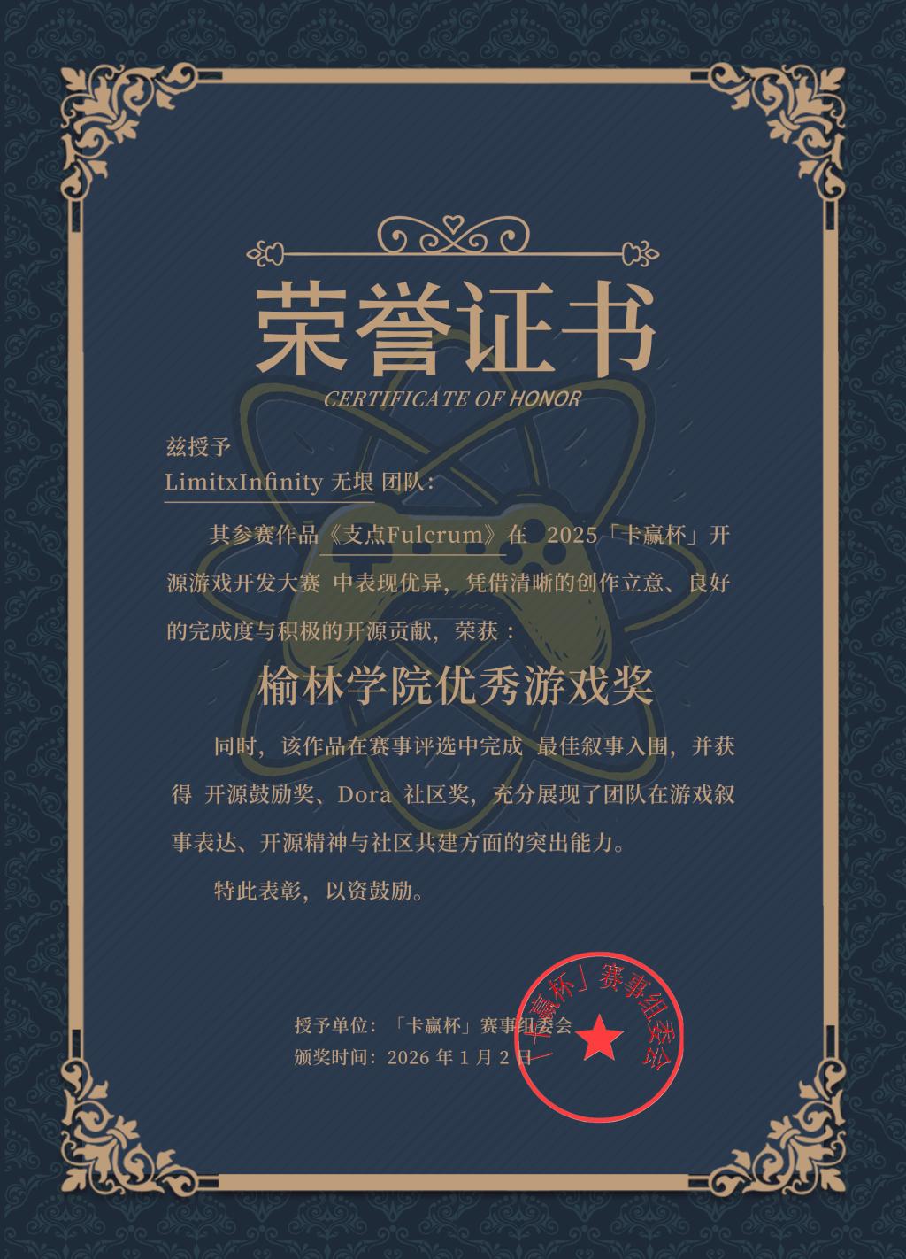 获奖情况:榆林公司优秀游戏奖、Dora社区奖、开源鼓励奖、入围最佳叙事奖
