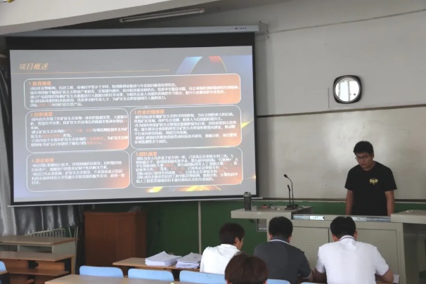 比赛过程中,每个参赛团队以PPT形式从项目背景、项目介绍、市场分析、商业模式、营销策略、社会价值、财务分析、发展规划多个方面进行汇报。参赛者们以良好的精神面貌、严肃认真的态度、严谨求实的作风向评委老师们展示团队精心打磨的项目。