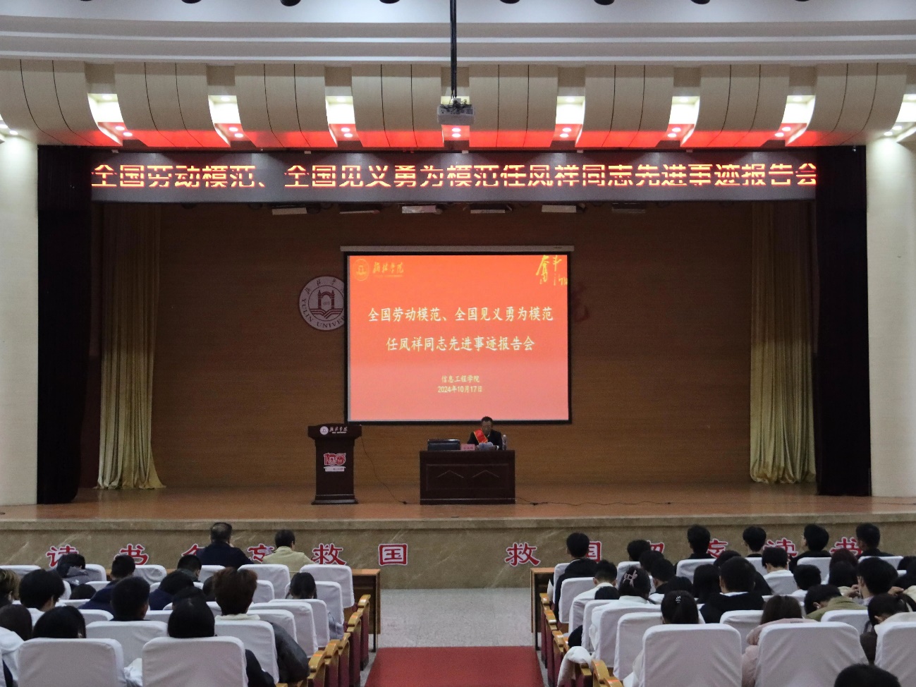 为培育和践行社会主义核心价值观,创新思政教育方式,大力弘扬劳模精神、工匠精神,培育德智体美劳全面发展的社会主义建设者和接班人,2024年10月17日下午,公司在图书馆二楼报告厅举办了“全国劳动模范、全国见义勇为模范”任凤祥同志先进事迹报告会。报告会由公司党总支书记王斌书记主持,副书记徐绘及400余名员工参加。