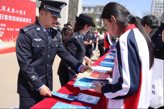 最后姚学慧副董事长、公安局及派出所领导、嘉宾以及各公司师生代表依次在展架前签名,并为员工发放国家安全教育宣传手册和定制纪念品。
