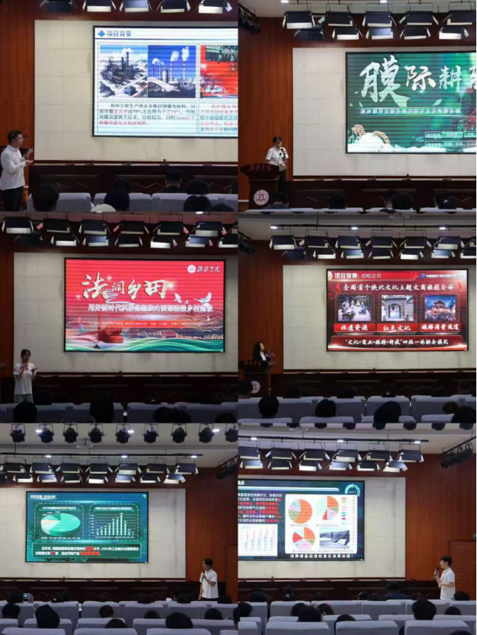 在决赛项目路演中,各团队各展风采,经过激烈角逐,评选出一等奖12个、二等奖20个、三等奖30个。6月6日上午9点至11点,12个一等奖项目在逸夫楼一楼报告厅展开了一场巅峰对决,最终评选出一等奖金奖2项、一等奖银奖4项、一等奖铜奖6项。