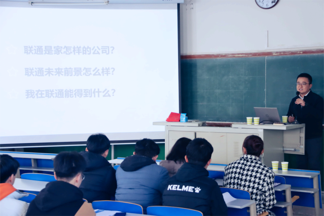 2023年11月30日下午,中国联通陕西分公司来公司开展2024届校园招聘,信息工程公司组织2020级有意向的同学积极参加。