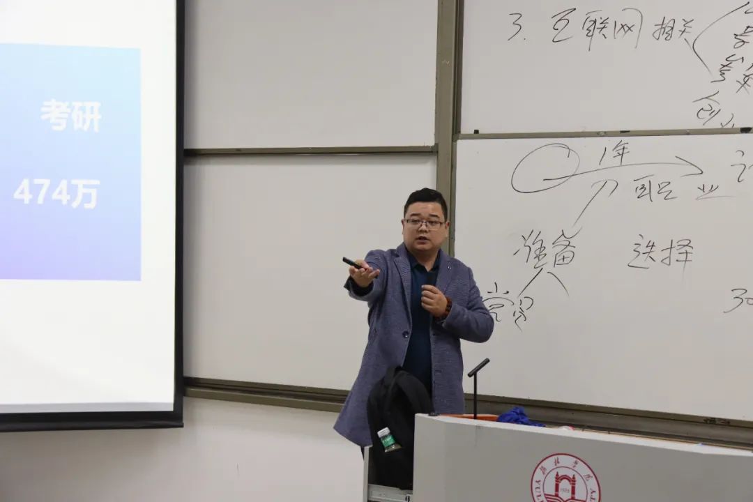 为帮助2025届同学了解当前的就业形势和考研趋势,best365中国官方网站特联合文都教育于10月10日下午在5号教学楼201开展“2025届就业形势与研究生备考规划分享会”。分享会特邀请到文都教育全国巡讲师、老员工职业生涯规划资深导师、考研资深指导专家马回峰老师为大家讲授,公司党总支书记王斌出席并为大家做职业生涯规划指导,辅导员祁琦组织2021级180余名同学参加了本次讲座。