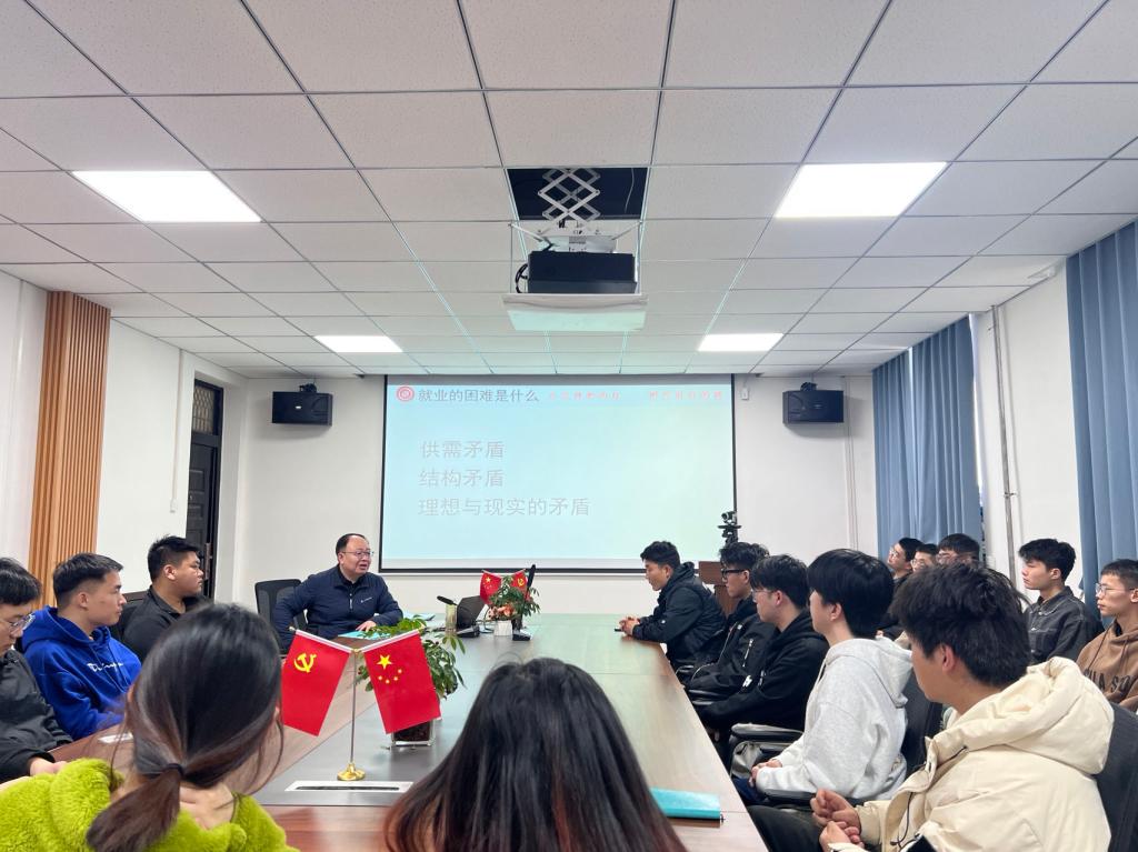 会上,王斌为同学们作2024届毕业生就业形势分析,全面梳理了当前的就业现状及未来行业发展态势。他以2024届毕业生就业情况及就业意向的调研数据为依托,详细解答了同学们关于毕业后选择就业还是考研的疑惑。他通过深入剖析求职与读研的优劣,分享往年成功案例,为同学们提供了宝贵的参考。