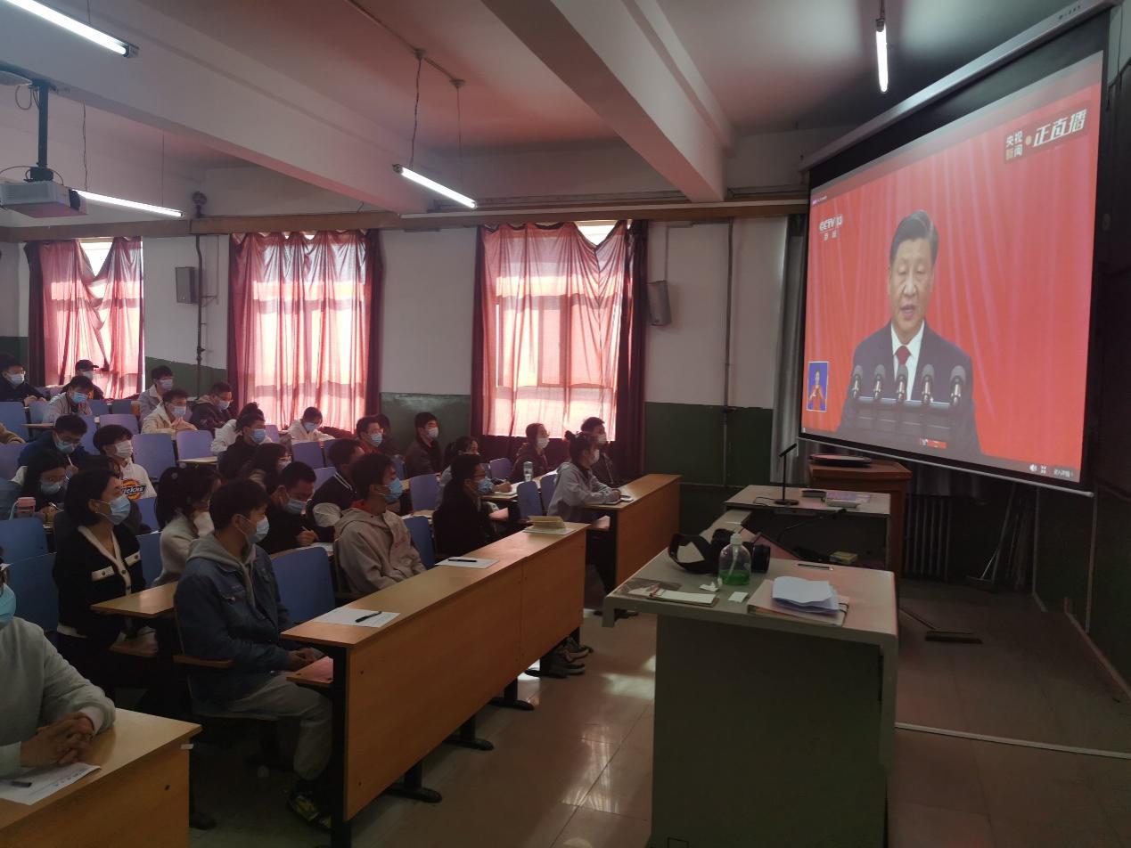 上午10点,雄壮的国歌声响起,中国共产党第二十次全国代表大会准时开幕,收看现场气氛庄严肃静。best365中国官方网站全体师生通过线上自行观看和线下集体学习的形式,共同收看了党的二十大开幕会电视直播,聆听了大会报告。