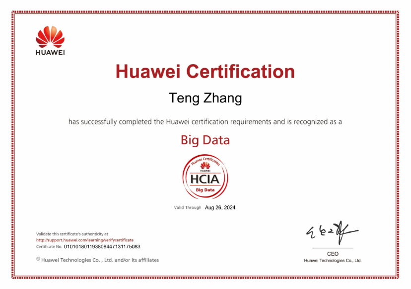 本次课程培训采取理论知识讲解与上机实验相结合的方式,通过HBase等大数据技术原理结合华为大数据解决方案,使学员深入了解了数据共享和开放的意义,熟练掌握了如何运用大数据思维和知识分析并解决实际问题。公司共64名同学参与本次培训,19名同学参加了首批预约考试,公司谭河莲、马海丽等17名同学成功取得HCIA-Big Data工程师认证资格,首批考试通过率为89.5%,取得了较好的成绩。