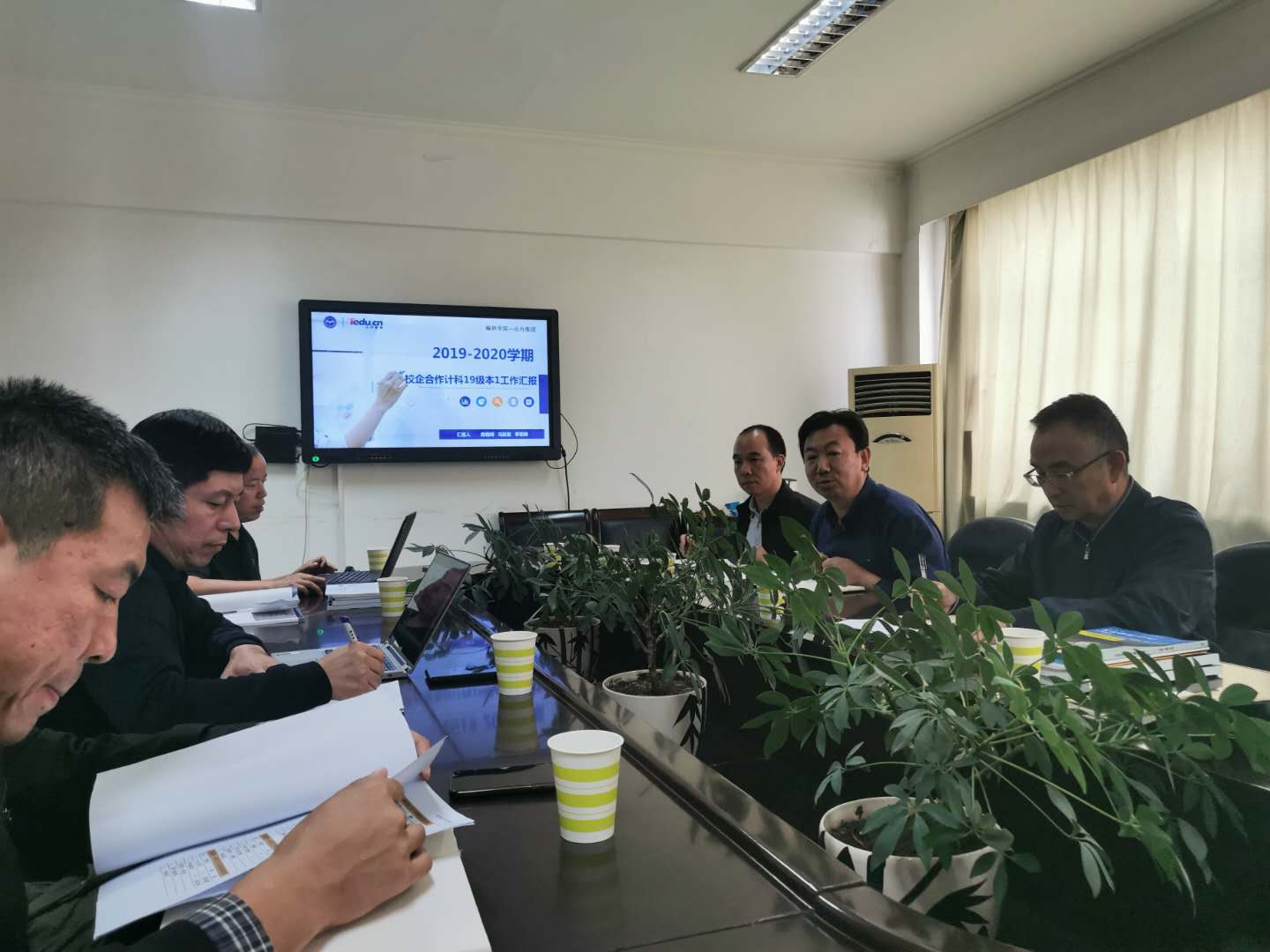 达内集团院校合作经理李军峰老师汇报了2020年度校企双方在2019级计算机科学与技术专业共建过程中所做的主要工作。达内集团西安中心总监陈相峰进行了补充说明以及后期工作的设想和计划。