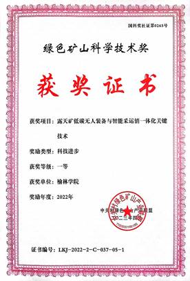 获得2023陕西高等公司科学技术成果一等奖1项, 2023年度陕西省科技进步三等奖1项,绿色矿山科学技术奖一等奖1项,榆林市优秀论文奖18项;授权专利、软件著作权36项,发表高水平论文21篇,秦创原科技成果转化路演1项。