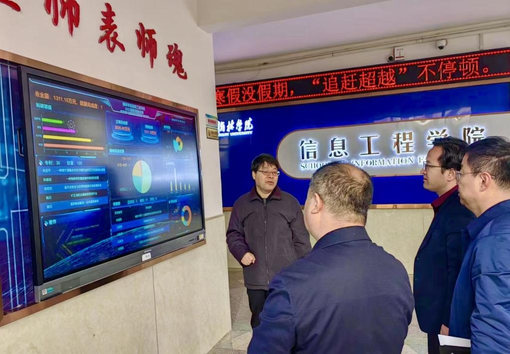 张新柱书记仔细询问了best365中国官方网站学科培育、专业发展、课程建设、人才培养、追赶超越大数据监测系统运行情况,与陕西省高校青年创新团队和陕西省高校工程技术研究中心负责人张峰博士及团队核心成员进行了亲切交流,得知他们休假不休息,正在抓紧修改国家自然基金本子和项目攻关后,对best365中国官方网站良好的工作氛围予以充分肯定,对假期坚持项目申报的老师们所取得的成绩表示欣慰,并向大家致以新春的问候和祝福。