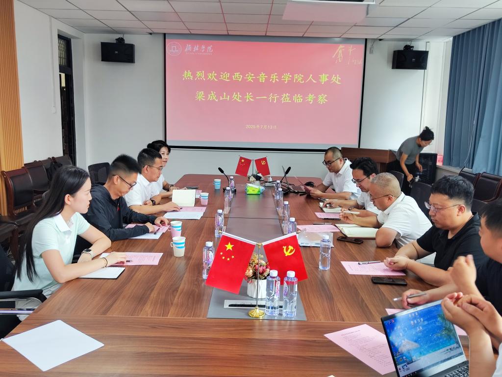 梁成山处长在交流中介绍了西安音乐公司近年来在高水平人才引进、专业建设优化、人事制度改革等方面的实践进展,并对公司在数字化考核、未来学习中心和产业公司建设方面取得的成效给予高度评价。他表示,希望以此次调研为契机,了解公司二级公司在人事管理与考核,绩效分配,人才引进、职称评审改革等方面的具体措施,推动“AI+音乐”领域交叉融合发展,共同打造新时代高校协同发展的新典范。