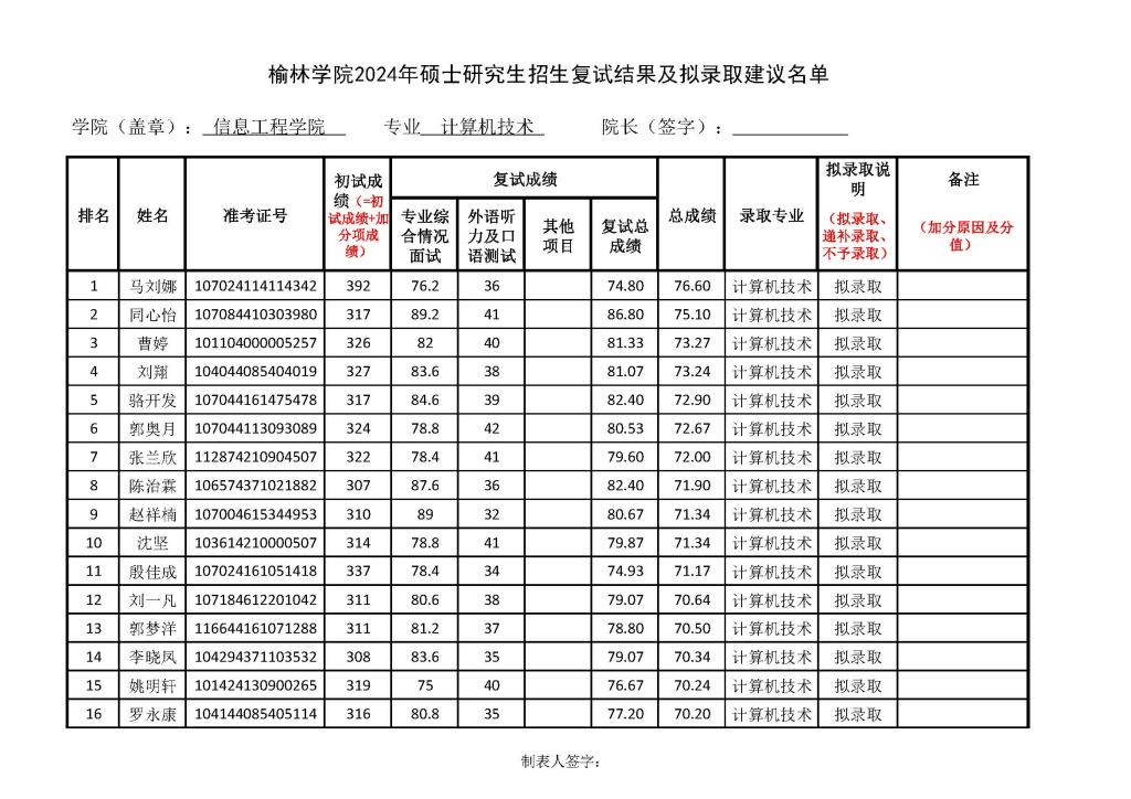 根据《榆林公司2024年硕士研究生招生复试及录取细则》,公司于4月10日-11日以线下的形式对调剂考生进行了复试。现将参加复试考生的基本信息、初试成绩、复试各项成绩、总成绩及公司“建议录取”结果予以公示,公示名单见附件。