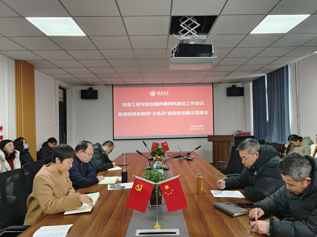 12月21日下午,公司在一号教学楼204会议室召开师德师风建设工作暨课程思政教师“大练兵”省级现场展示观摩会,会议由公司党总支书记王斌主持,公司全体教师参加会议。
